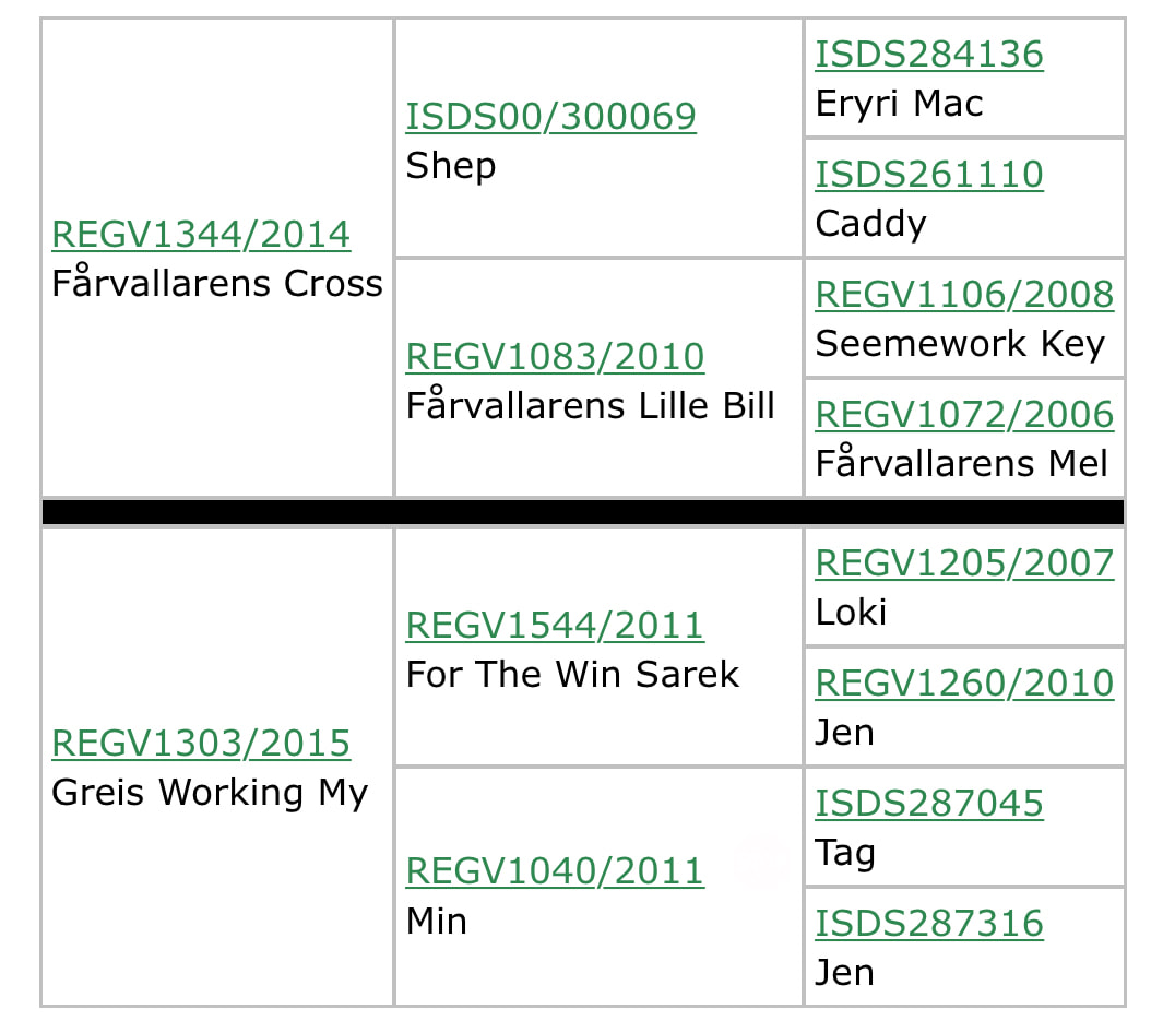Färg: Svart & vit Pälslängd: Långhårig Storlek: ca 48 cm hög & 16 kg HÄLSA Höfter: A/B Armbågar: 0/0 Ögonlyst: UA DNA test: Normal / fri / clear för IGS, TNS, PLL MDR1, DM, MC, NCL & BHFP. Anlagsbärare för CEA. MERITER ★ Svensk Rallylydnads Champion ★ RLD A ★ RLD F ★ RLD N ★ Delt. Nordic Nursery 2017 ★ 4:a Unghunds SM 2017 ★ 4:a Norrlands Mästerskapet 2017 ★ 6:a IK-2 ★ 1:a pris i IK-1 ★ GK VALLH PR ★ Känd Mentalstatus (MH) |