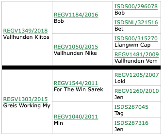 MDR1, DM, MC, NCL eller BHFP då minst en av föräldrarna är DNA normal / fri från dessa och anlagen kräver minst 2 bärare alternativ 1 bärare och 1 sjuk för att sjukdomarna ska kunna utvecklas. Preliminärt HD index är 103 för denna kull och inavlesgraden är 0,0 % |