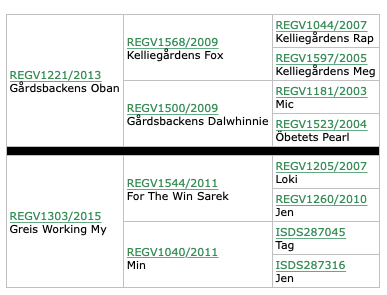 Preliminärt HD index är 105 för denna kull och inavlesgraden är 0,0 % |