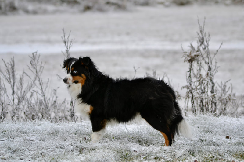 Ras: Miniature American Shepherd Kön: Tik Född: 2022-03-17 Mor: Dalorogården Ice Cream Vanilla Far: Cross L’s Rebel In Red Färg: Svart tre-färgade Storlek: 39 cm hög & 10 kg Svans: Lång svans HÄLSA Höfter: A/A Armbågar: 0/0 Patella: 0/0 Ögon: UA Tänder: Fullt saxbett DNA tester: Normal / fri / clear på 272 hälsotester från MyDogDNA som bl.a: CEA, CH, CDDY, IVDD, DM, HSD4, HUU, IGS, MDR1, CMR1, PRA-PRCD, TNS, PLL, MC, NCL, BHFP. Anlagsbärare för NAD. MERITER ★ Svensk Viltspårs Champion ★ Utställd med Excellent, CK, CERT & BIM ★ 2x Kvalificerande resultat Rallylydnad Fortsättningsklass ★ 1x Diplom TEM NW1 med 1 SSE ★ Godkänt Doftprov i Eukalyptus ★ Genomfört BPH – Skottfast ★ RLD N där hon har fått maxpoäng 100p ★ Årets Allround MAS 2023 hos Svenska MAS klubben ★ Årets Viltspårs MAS 2023 hos Svenska MAS klubben ★ Årets Rallylydnadshund 2023 hos Skutskärs BHK |